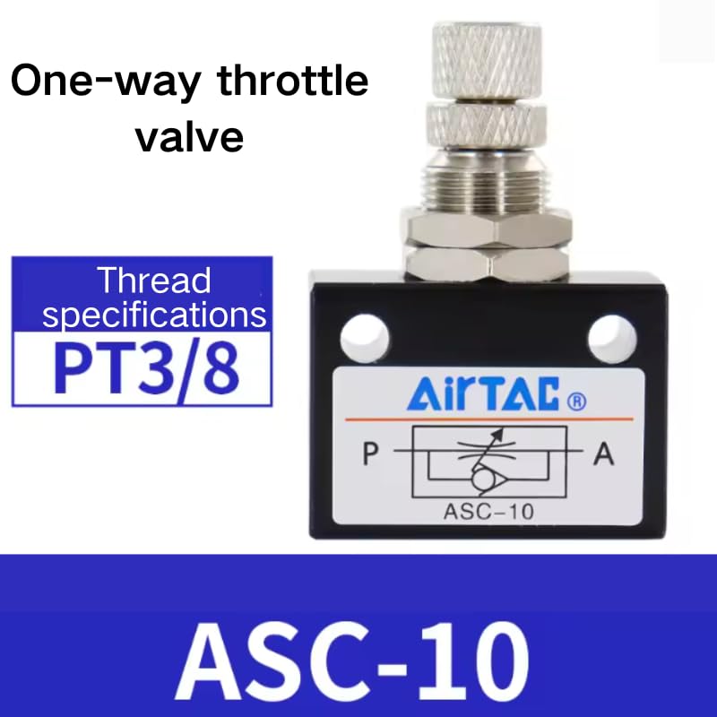 AirTAC 편도 스로틀 밸브 ASC100-06/200-08 공압 조절 흐름 제어 속도 조절 밸브