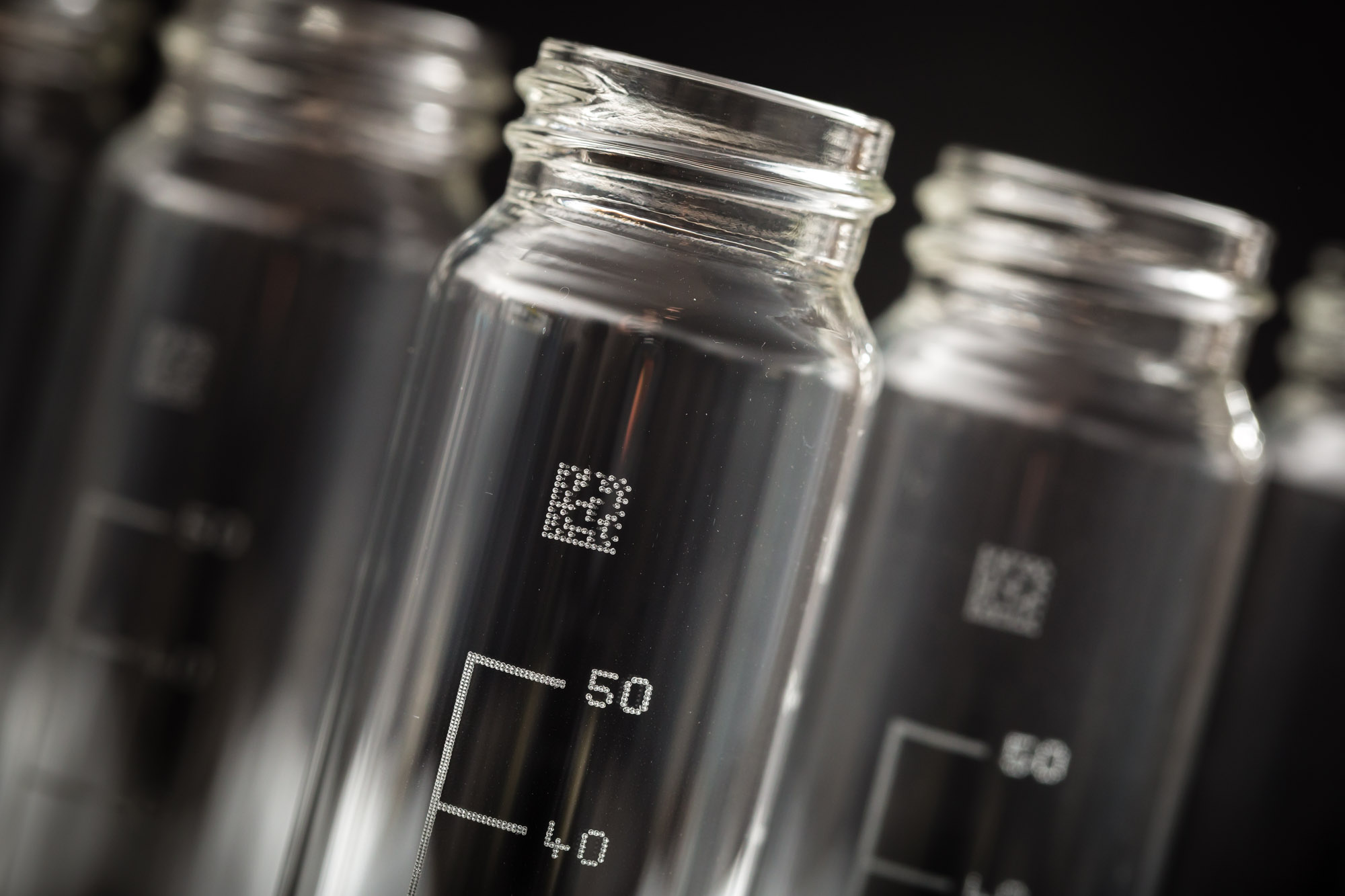 • Protection of surface integrity: The goal of safe marking is to achieve the desired visual effect (frosted, deep engraving, etc.) while maintaining the overall structural integrity of the glass. This is especially crucial for special products such as thin-walled containers and tempered glass.