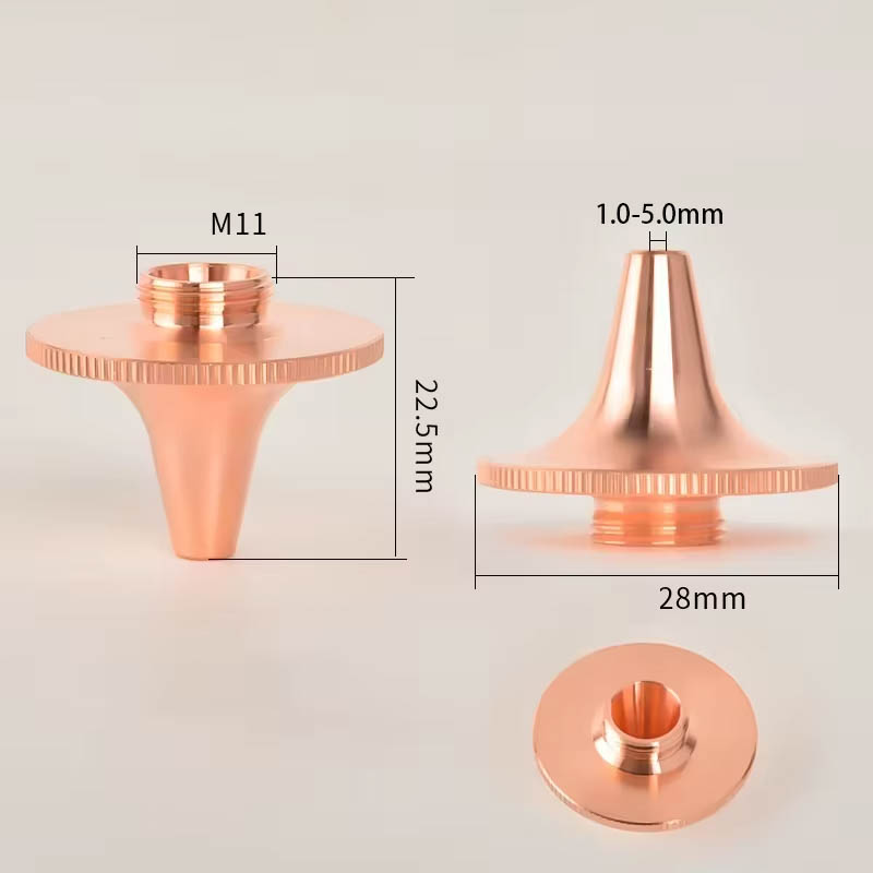 에서 만든고품질 구리, 이 노즐은 우수한 열 전도성과 내구성을 제공하여 지속적인 산업 사용에 적합합니다. 이 소재는 고출력 레이저 작동 중에도 절단 안정성과 성능을 유지하는 데 도움이됩니다.