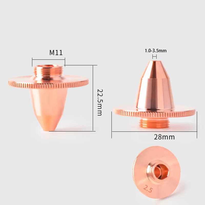 에서 만든고품질 구리, 이 노즐은 우수한 열 전도성과 내구성을 제공하여 지속적인 산업 사용에 적합합니다. 이 소재는 고출력 레이저 작동 중에도 절단 안정성과 성능을 유지하는 데 도움이됩니다.