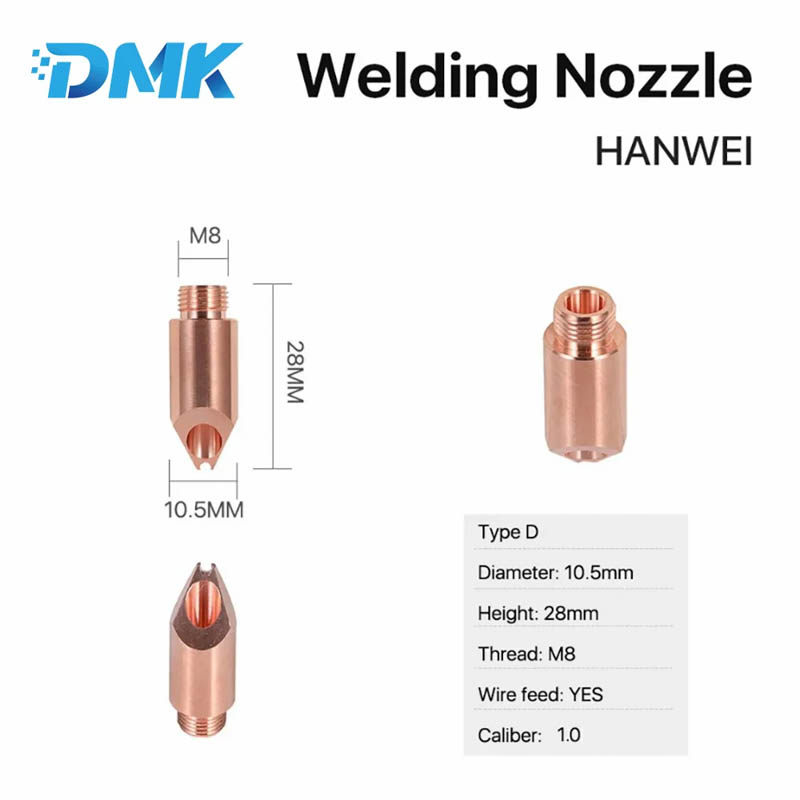 한웨이 레이저 용접 노즐 M8x28mm 와이어 공급 구리 노즐 도매 용접 노즐
